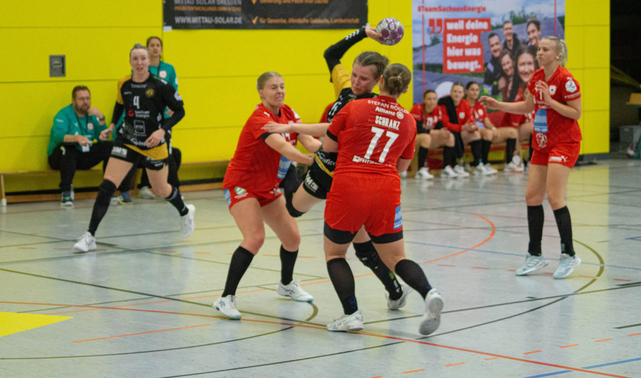 Am Sonntag reisten die Rödertalbienen zum Spitzenspiel gegen den Bundesliga-Absteiger SV Union Halle-Neustadt. Die Anspannung war greifbar, zumal Julia Mauksch krankheitsbedingt fehlte und Trainerin Maike Daniels mit einem stark reduzierten Rückraum auf Santina Sabatnig, Alicja Pekala, Lena Smolik und Vanessa Huth zurückgreifen musste. Diese Umstände zwangen die Bienen zu einem kontrollierteren Spieltempo, um ihre Kräfte über die gesamte Spielzeit zu schonen.