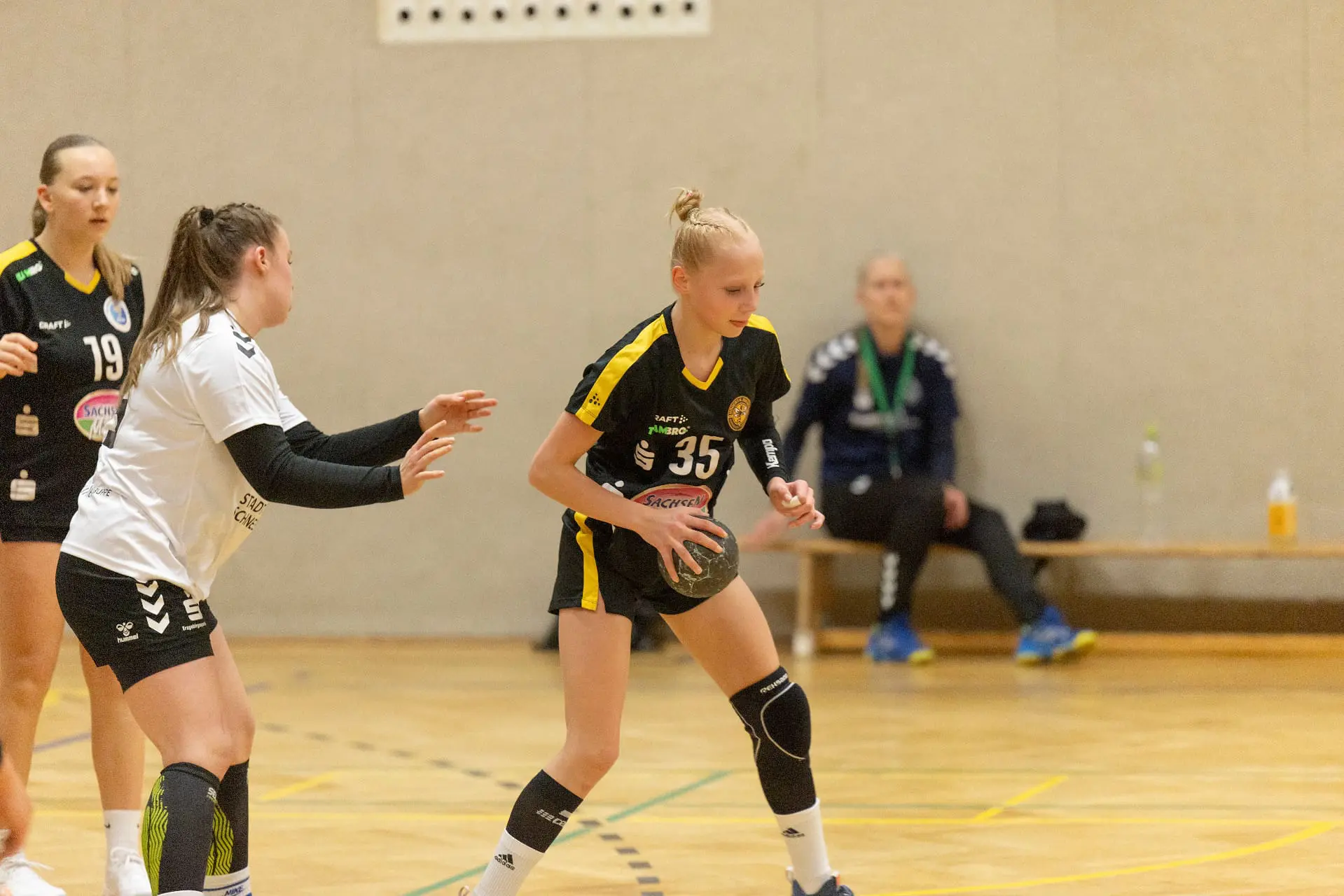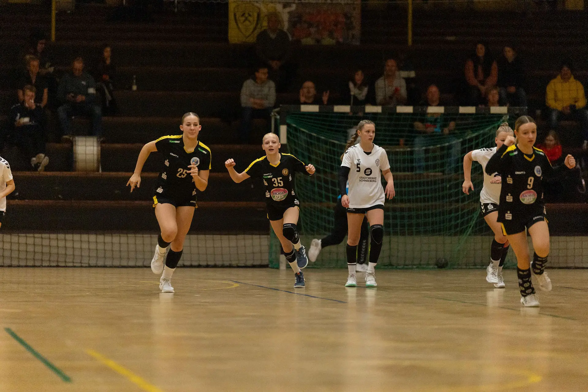 In einer intensiv geführten ersten Halbzeit war es vor allem das starke 1-gegen-1 der SG, das unserer Abwehr immer wieder Probleme bereitete. Die Gastgeber nutzten ihre körperliche Stärke und Spielfreude, um sich kontinuierlich abzusetzen. Trotz guter Paraden unserer Torhüterinnen Freya und Svea ging es mit einem 6-Tore-Rückstand (19:13) in die Pause.
