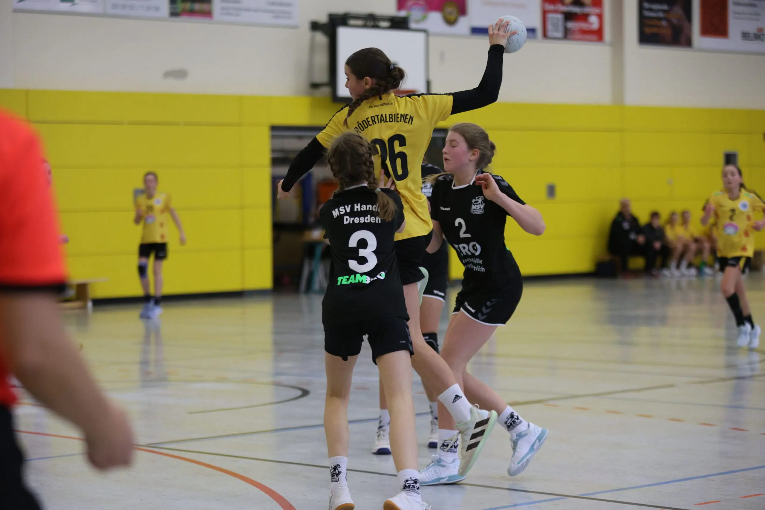 Am Sonntag, 08. Dezember, empfingen die D1-Rödertalbienen den MSV Dresden zum letzten Heimspiel des Jahres 2024 in Großröhrsdorf. Schon in den ersten Minuten wurde deutlich, dass die jungen Handballerinnen entschlossen waren, ihren Gegnerinnen keinen Raum zur Entfaltung zu lassen. Mit präzisen Pässen, konsequentem Abwehrspiel und beeindruckender Treffsicherheit dominierten die D-Bienen das Geschehen von Beginn an und hielten diesen hohen Anspruch über die gesamte Partie hinweg aufrecht.