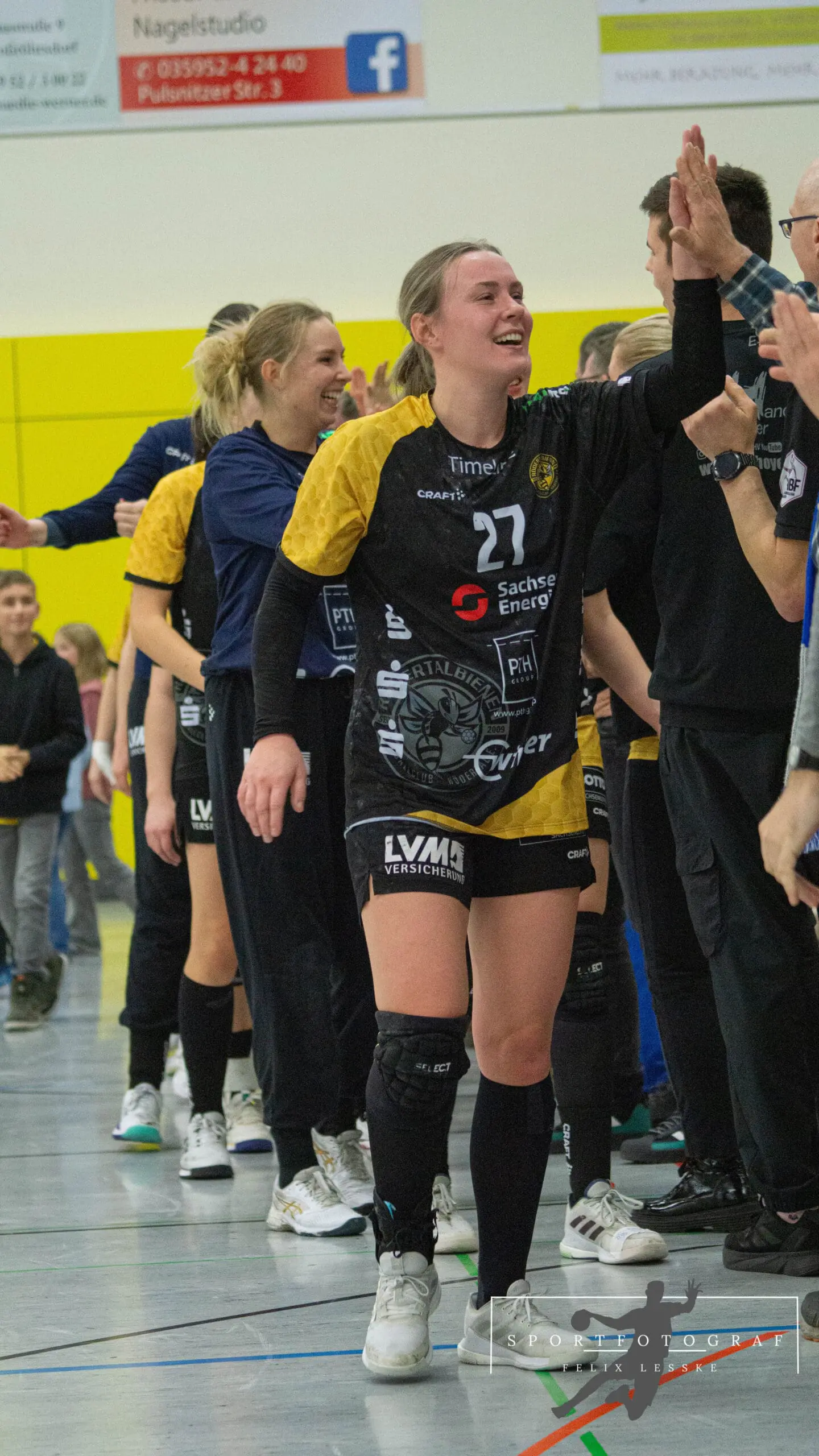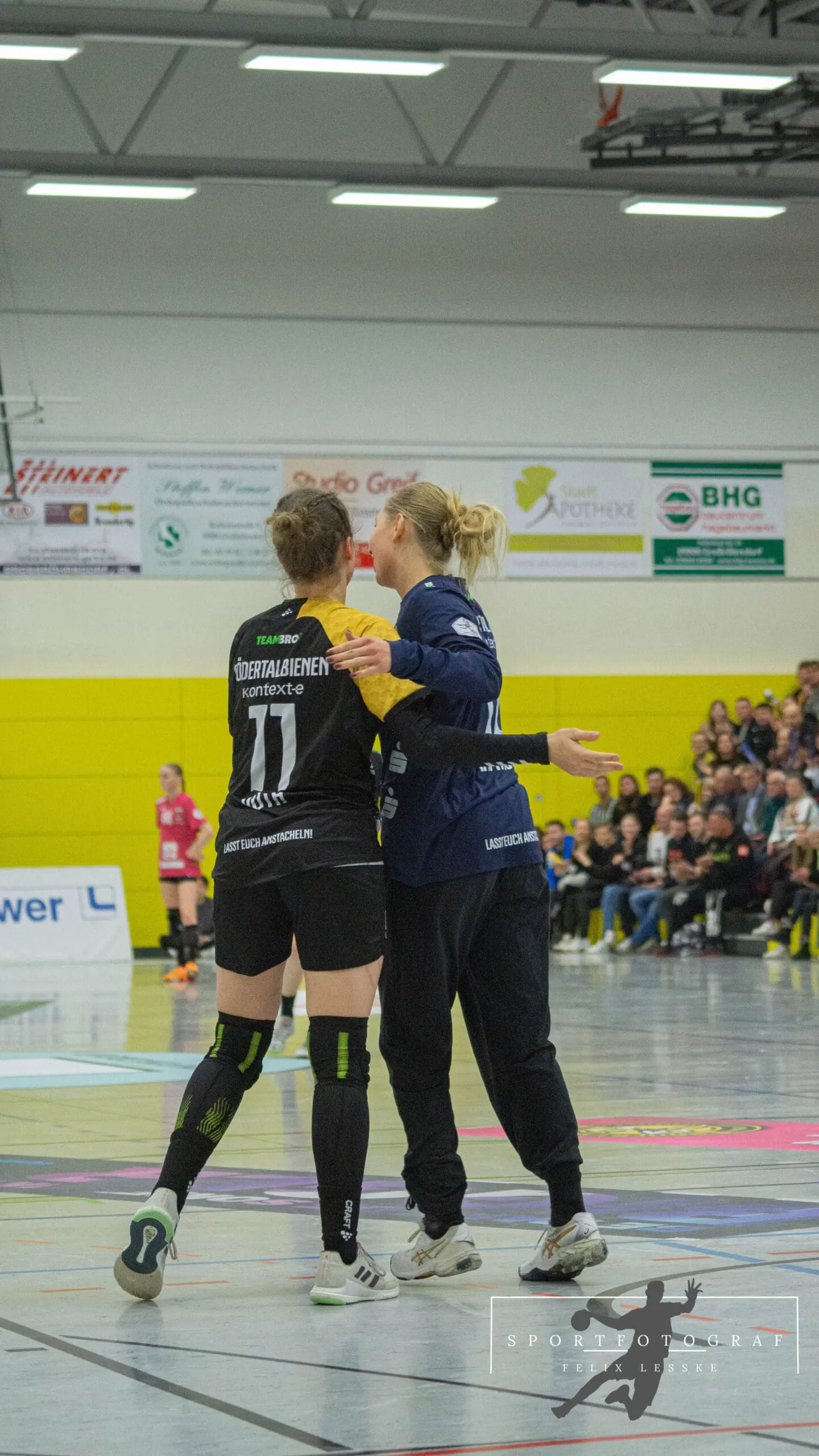 Was für ein Spiel der Bienen! So war auch Maike Daniels elektrisiert von dem Spiel und der Stimmung: „Bei manchen Aktionen habe ich fast wieder einen Herzifarkt bekommen, aber es waren ja genug Leute da die mich hätten retten können“, sagte sie mit einem Lächeln um dann auch das Spiel noch einzuordnen: „Wir haben uns den Start in die zweite Halbzeit etwas anders vorgestellt. Wir haben gewusst das Berlin stark aus der Kabine kommen würde und spannende Spiele für sich entscheiden kann. Um so stärker war es, dass wir dann gerade in Unterzahl so zurück gekommen sind. Ich bin einfach froh über die zwei Punkte und sehr, sehr zufrieden.“