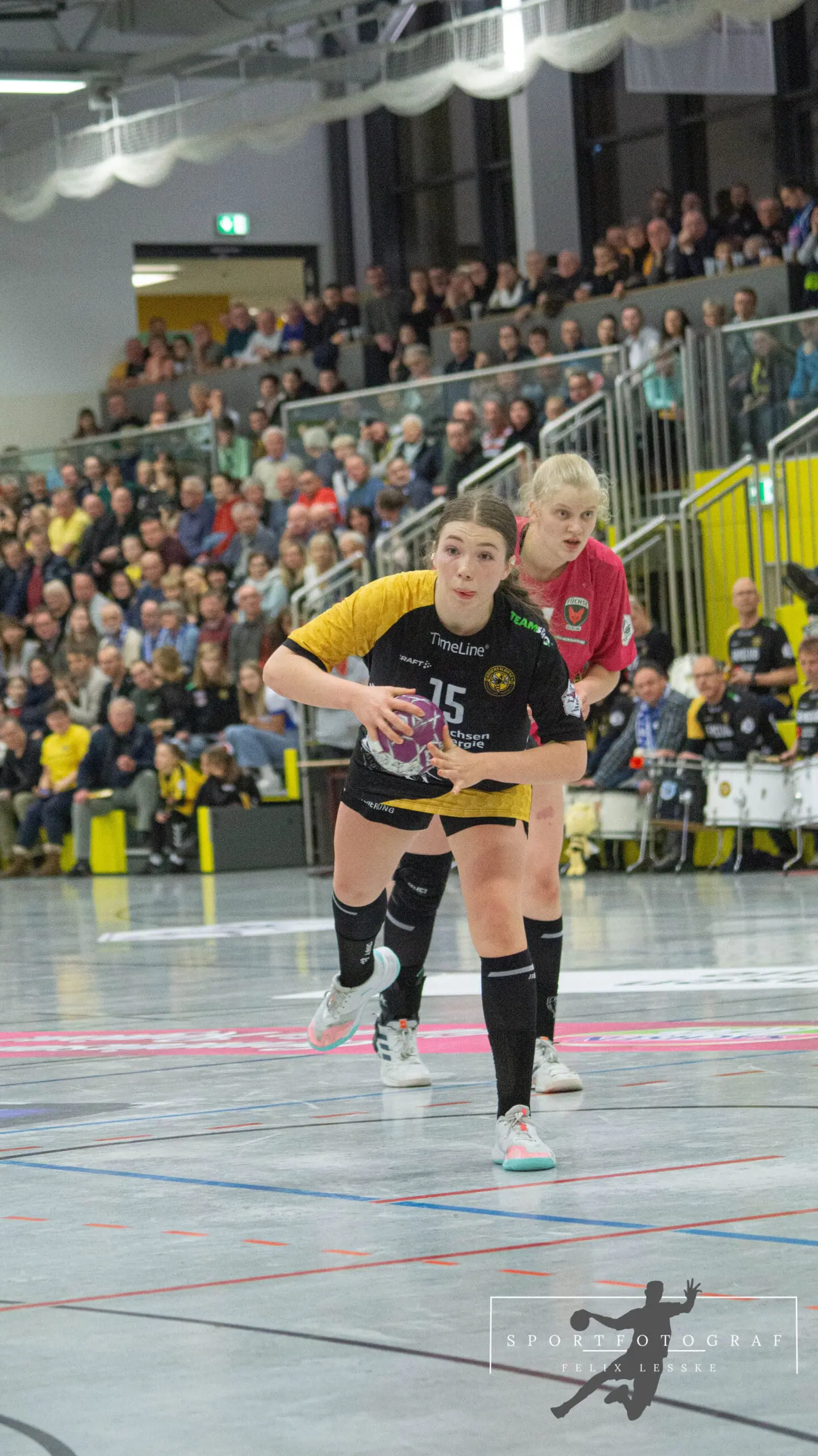 Und diese Befürchtung sollte sich dann auch gleich bestätigen, denn die Füchse kamen mit ordentlich Dampf aus den Kabinen. Etwas mehr als 3 Minuten waren gespielt und es stand wieder 13:12 – das Spiel ging quasi wieder bei Null los und war völlig offen. Die Fanlager beider Mannschaften merkten, dass die Begegnung nun in beide Richtungen kippen konnte und machten ordentlich Stimmung.