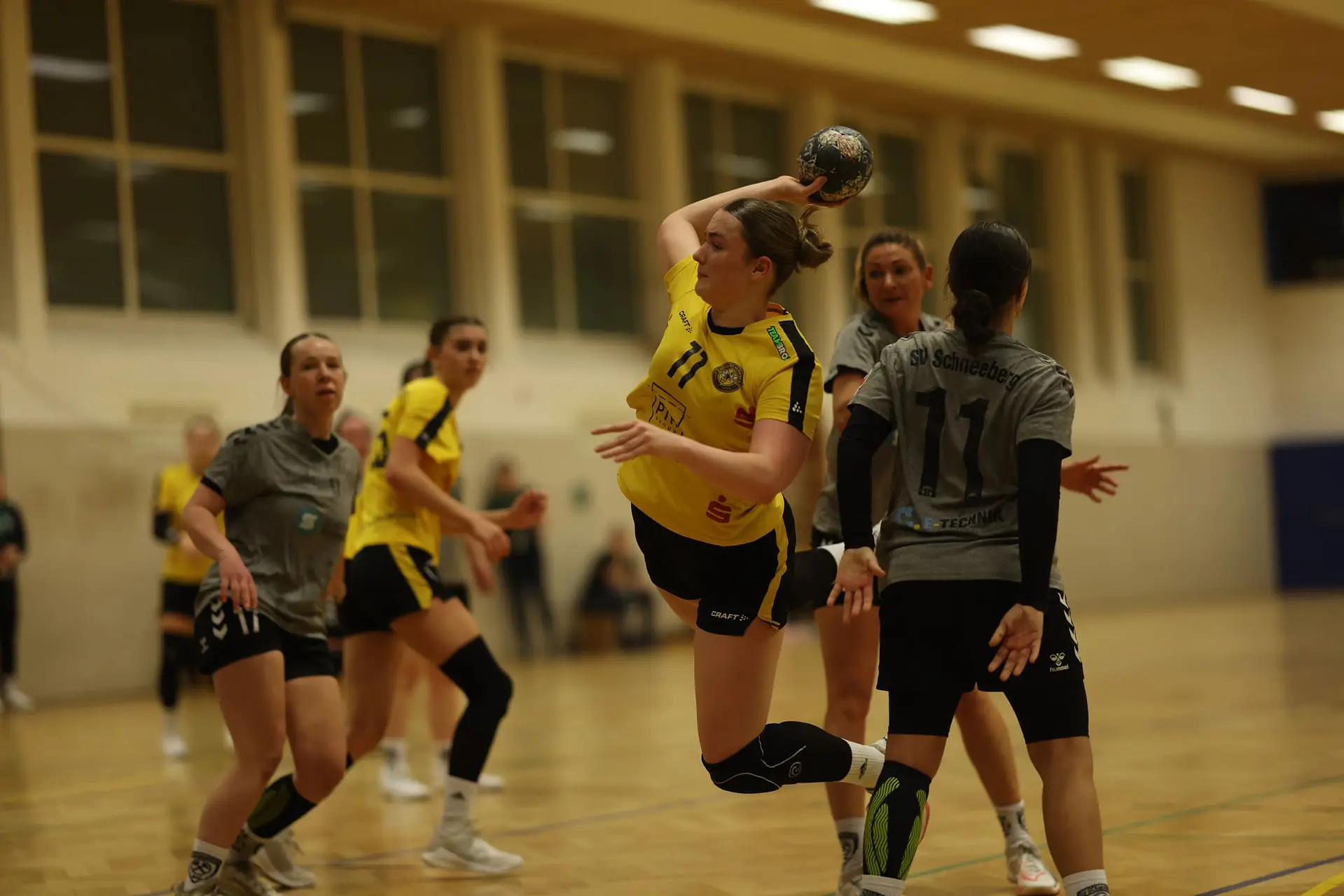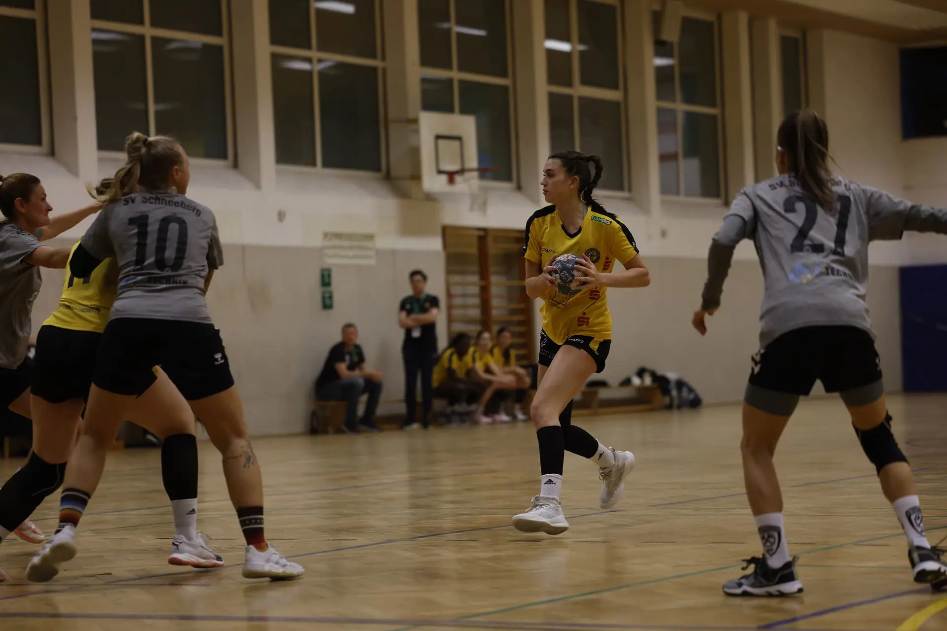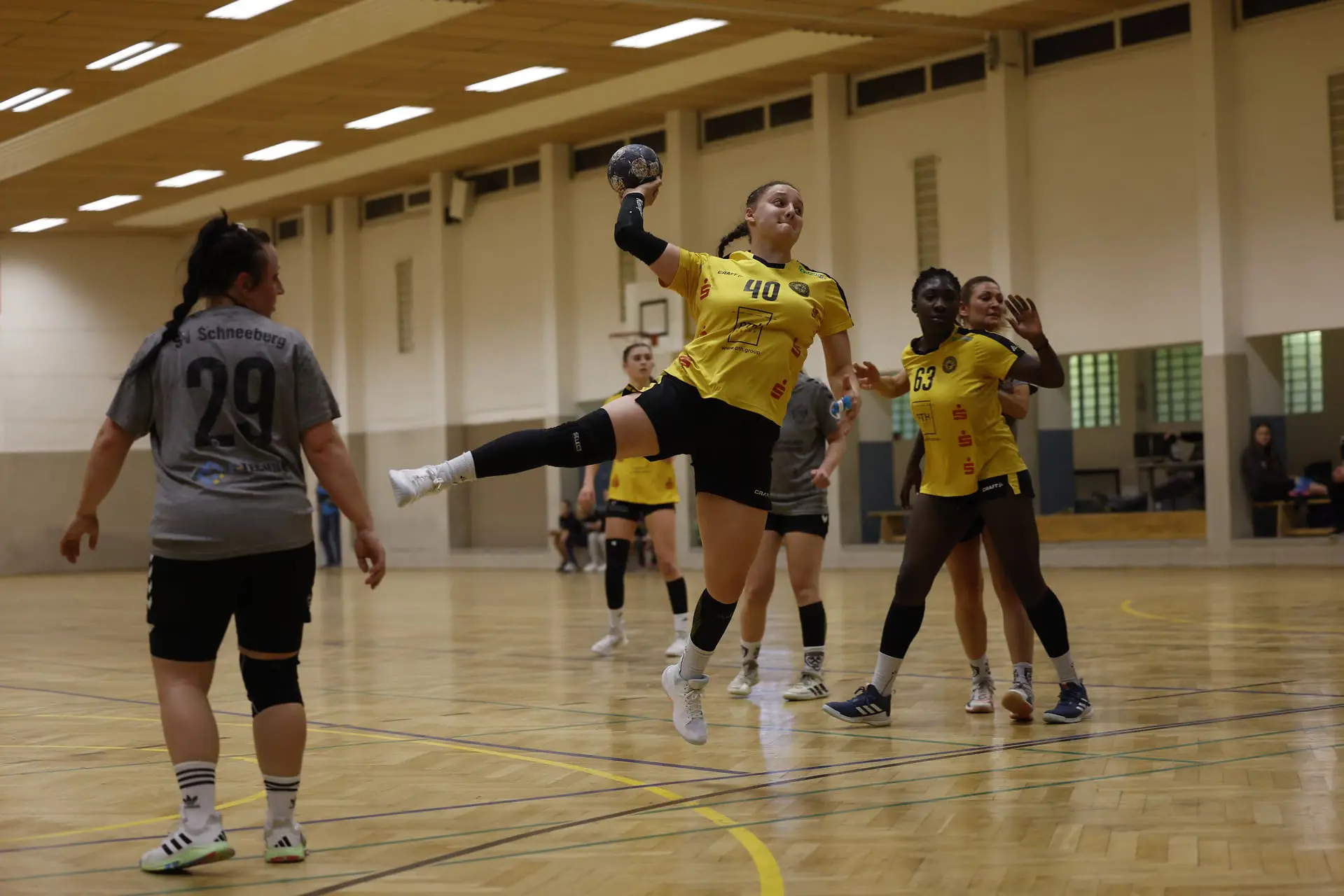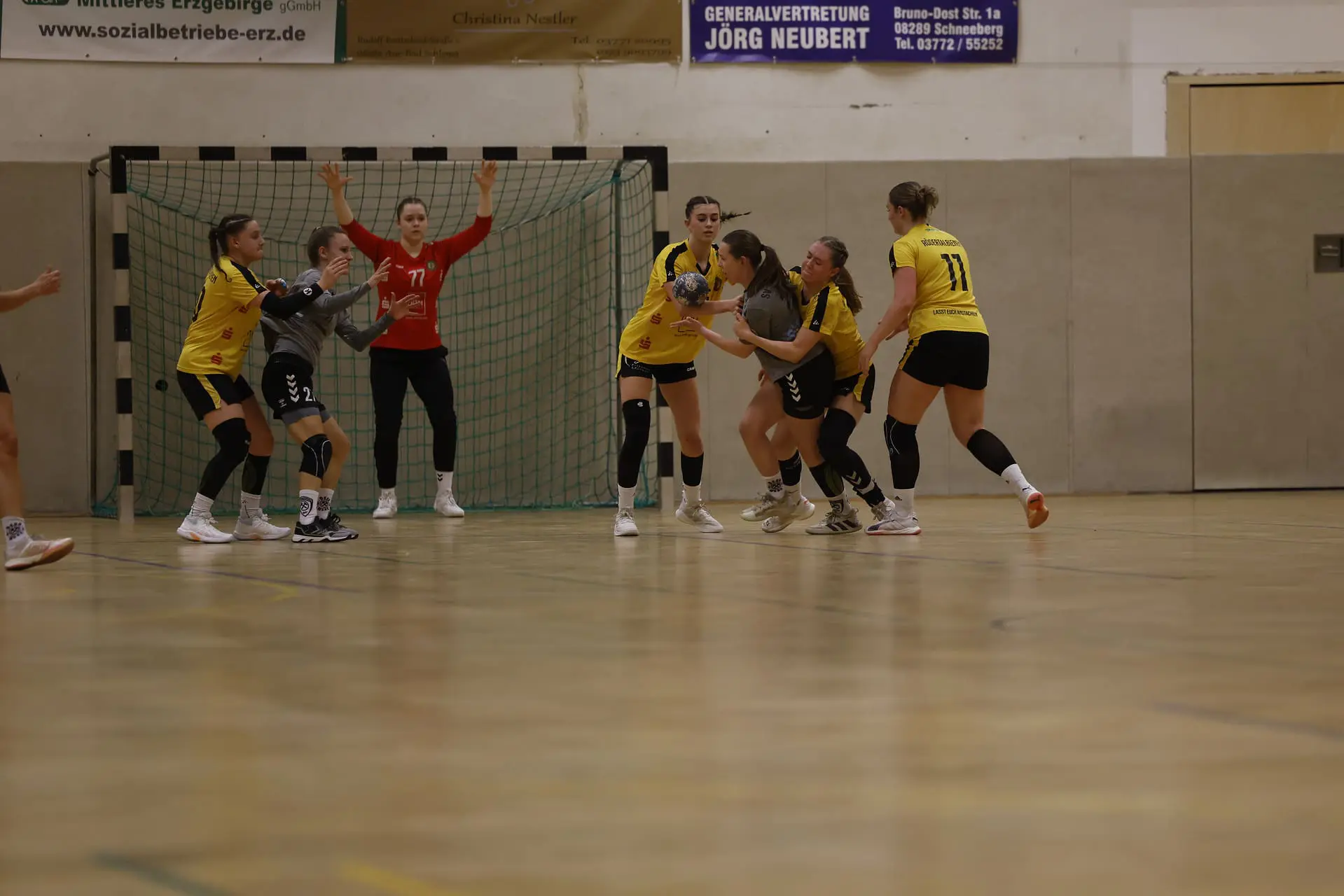 Die junge Mannschaft erwischte einen denkbar schlechten Start und lag bereits nach fünf Minuten mit 1:5 in Rückstand. Unpräzise Abschlüsse führten zu schnellen Gegentoren, und die Gastgeberinnen nutzten diese Schwächen konsequent aus. Bis zur 13. Minute (9:5) konnten sich die Bienen stabilisieren, doch in der Folge schlichen sich erneut Fehler in der Offensive ein. Schneeberg baute seinen Vorsprung kontinuierlich aus und setzte sich zwischenzeitlich mit acht Toren ab. Über 12:6, 15:7 und 20:12 ging es schließlich mit einem deutlichen 20:13-Halbzeitstand in die Kabine.