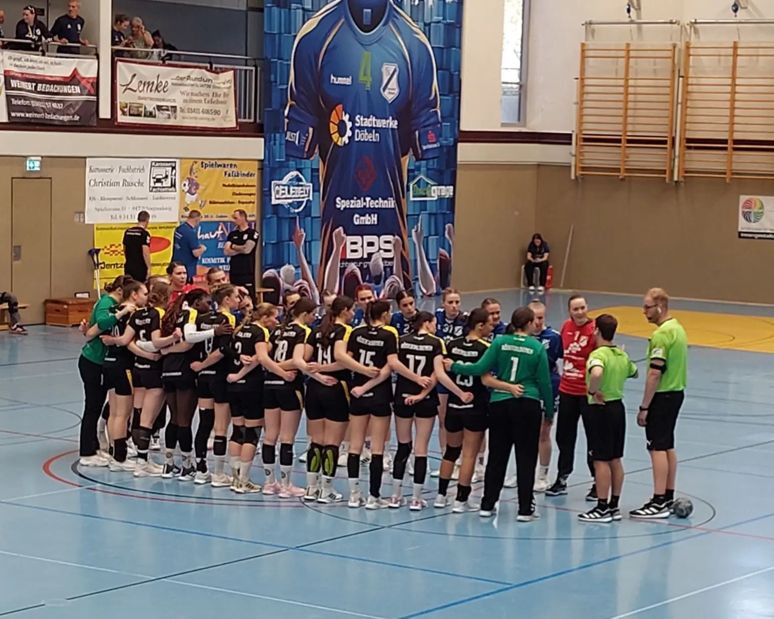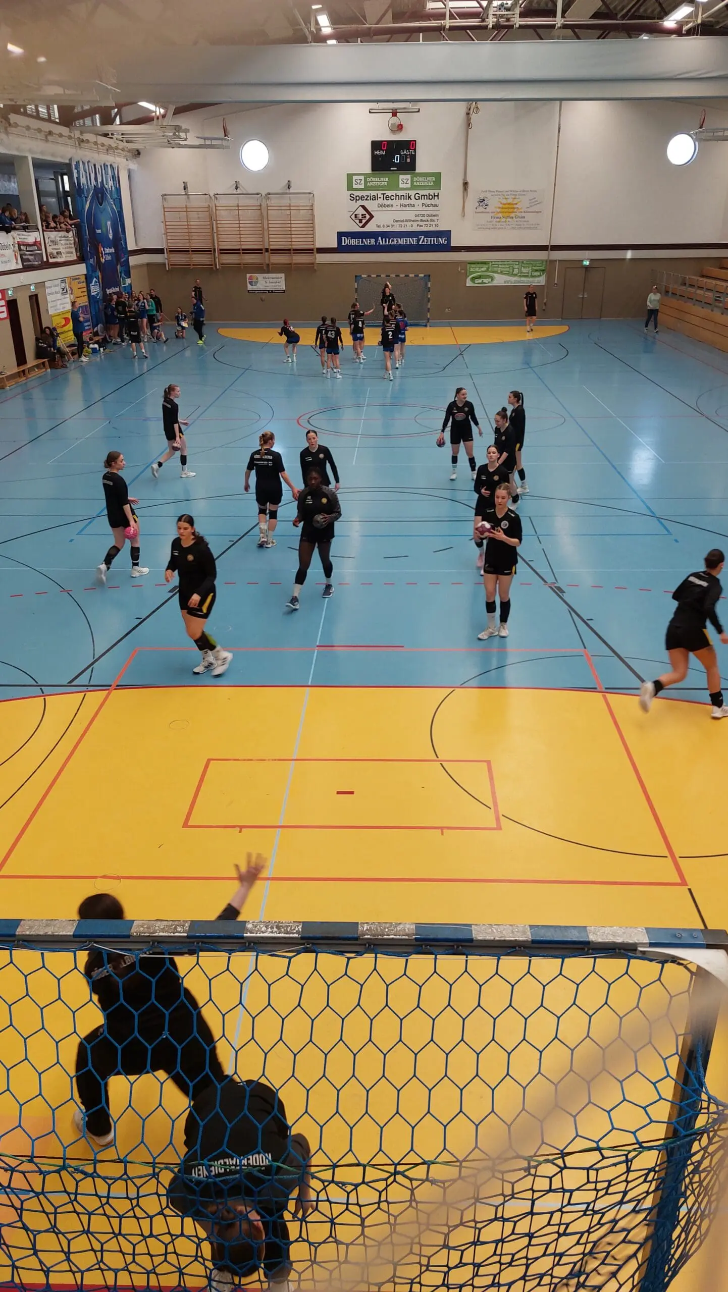 Die Anfangsphase gehörte unseren Bienen, die sich vor einer beeindruckenden Kulisse von rund 200 Zuschauern mit 2:5 bzw. 4:7 in Führung brachten. Doch die Gastgeberinnen fanden zunehmend besser ins Spiel und glichen in der 13. Minute zum 7:7 aus. In der Folge bekam unsere junge Mannschaft mit der physischen Spielweise der HSG zu kämpfen, zumal Natascha phasenweise durch enge Manndeckung aus dem Spiel genommen wurde. Auch defensiv tat man sich schwer – Würfe aus dem Rückraum konnten in der 6:0-Deckung nicht effektiv verteidigt werden, sodass Döbeln mit drei Treffern in Führung ging (15:12; 17:14). Mit einem 17:15-Rückstand ging es in die Kabine.