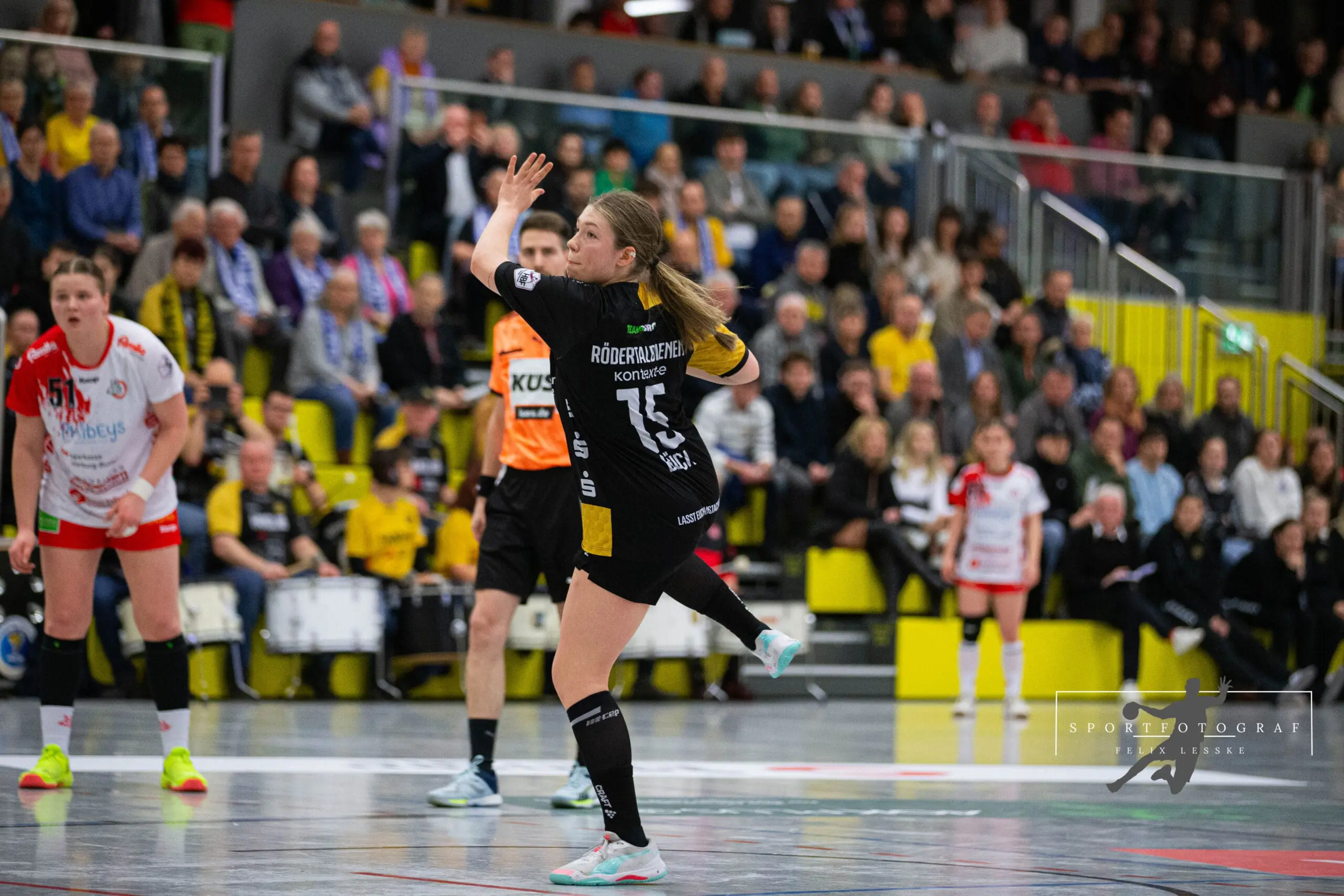 Eine doppelte Unterzahl nutzten die Gastgeberinnen clever aus und gingen in der 16. Minute mit 8:7 in Führung. Das verletzungsbedingte Fehlen von Vanessa Huth machte sich in der Abwehr bemerkbar und führte zu Abstimmungsproblemen, die Rosengarten mehrfach ausnutzen konnte. Doch der HCR überzeugte durch Einsatzwillen und kämpferische Einstellung: Lena Smolik brachte ihr Team mit dem 8:9 wieder in Führung. Bis zum Pausenstand von 15:17 blieb die Partie offen. In den letzten sieben Minuten der ersten Hälfte fanden die Rödertalerinnen offensiv besser ins Spiel – sieben Treffer in dieser Phase sorgten für Selbstvertrauen zur Pause.