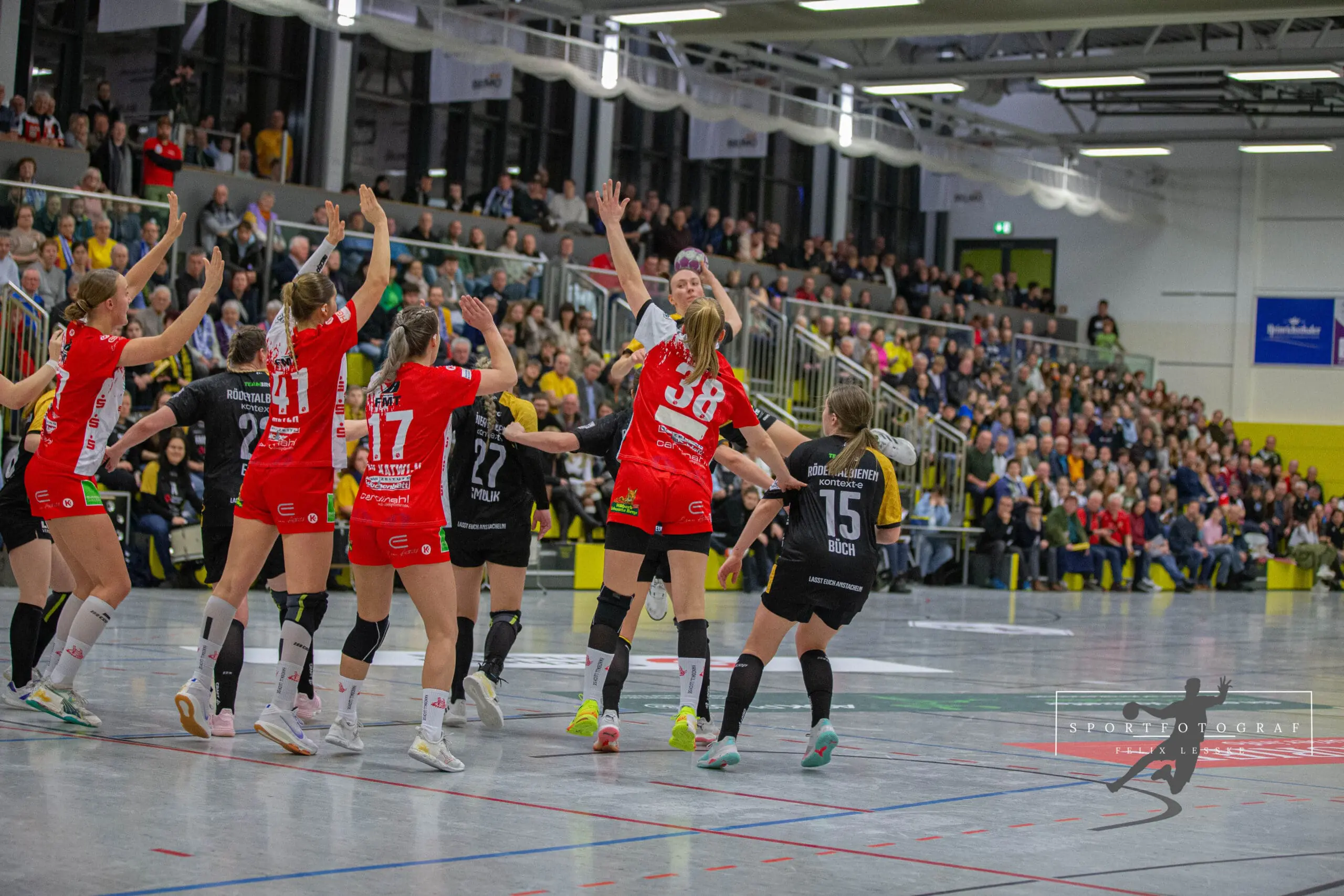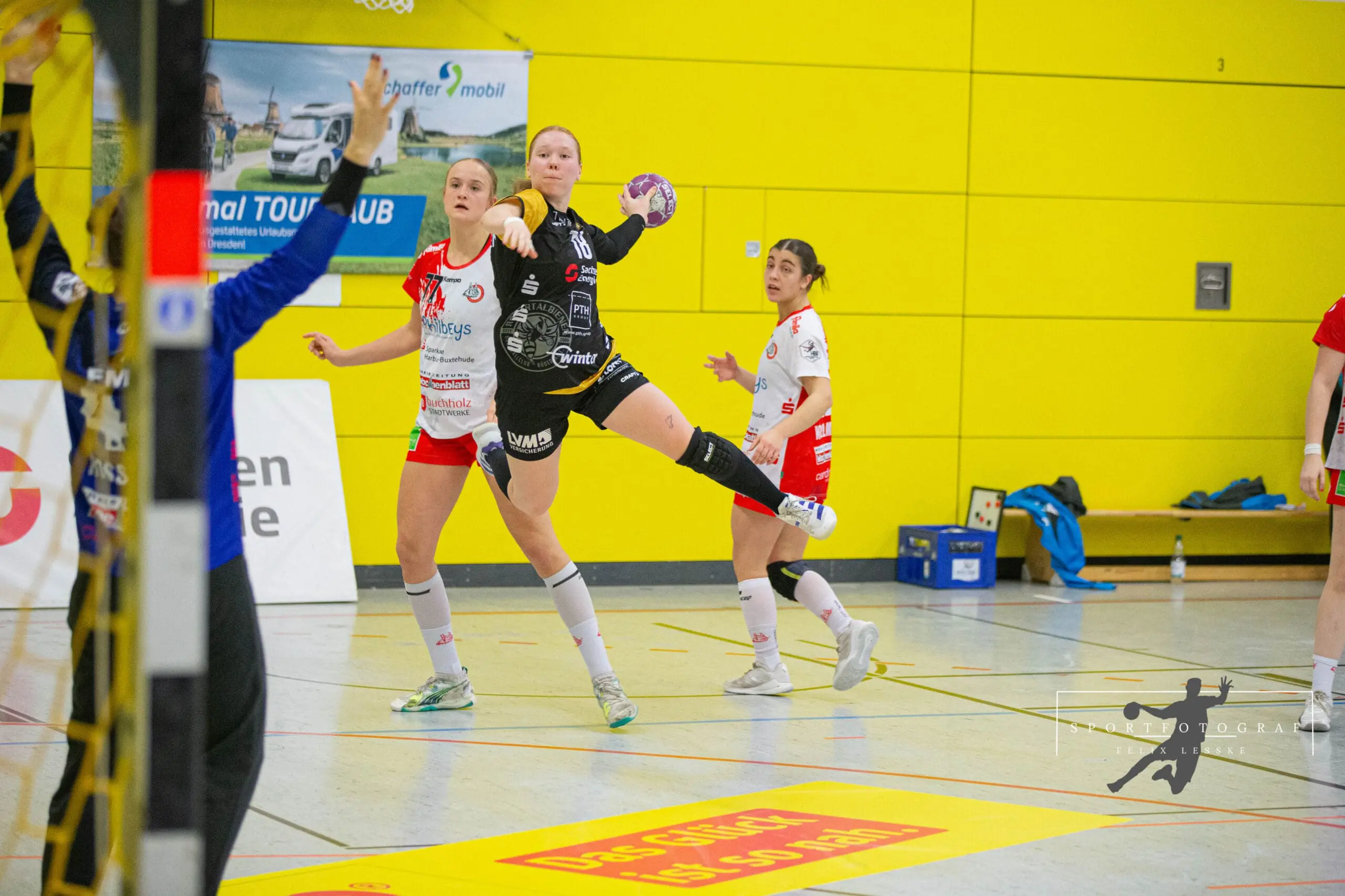 Davon ließ sich der Bienen-Express jedoch nicht beirren: Bo Dekker traf vom Kreis, wenig später erhöhte Fabienne Büch auf 15:19. Die Chancenverwertung blieb aber ein Thema – Buchholz kam nochmals auf 18:19 heran. Zwei starke Abschlüsse von Lena Schorch von Linksaußen stellten jedoch den alten Abstand zum 19:22 wieder her.