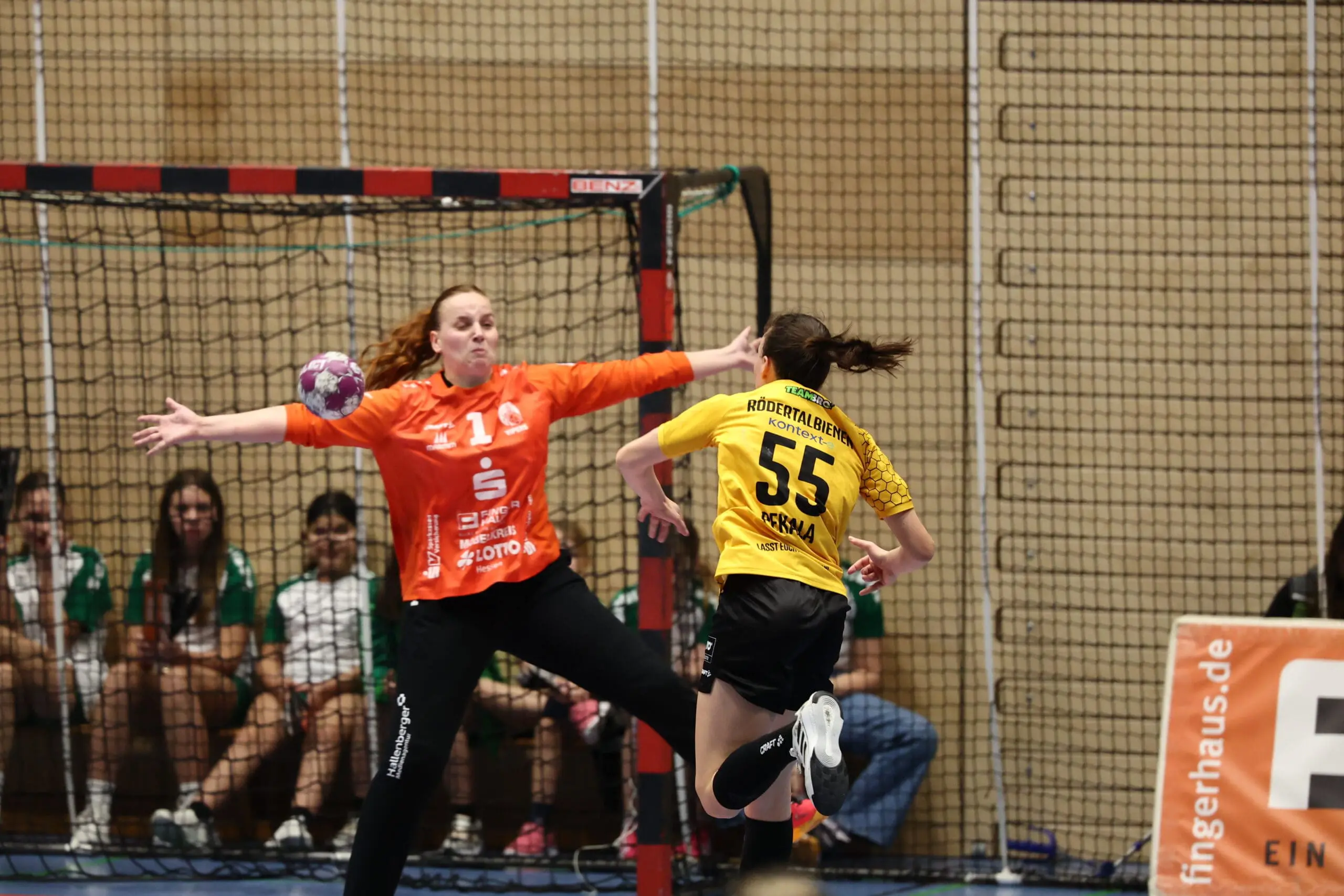 In einem Spiel auf Augenhöhe erwischten die Gäste mit 2:0 den besseren Start. Mit schnellem Rückzugsverhalten verhinderte Lena Smolik eine höhere Führung der Spreefüchse. Zugleich rüttelte sie ihr Team wach. Die Belohnung war eine eigene 3:2-Führung. Dennoch fanden die Berlinerinnen in der offensiven 5:1-Abwehr der Rödertalbienen immer wieder Löcher. Der HCR rannte so oft einen Zwei-Tore-Rückstand hinterher. Für ein Raunen im Bienenstock sorgte dann Neuzugang Rozemarijn Alderden, als sie mit einem Hammerwurf zum 8:9-Anschluss direkt in den Winkel traf.