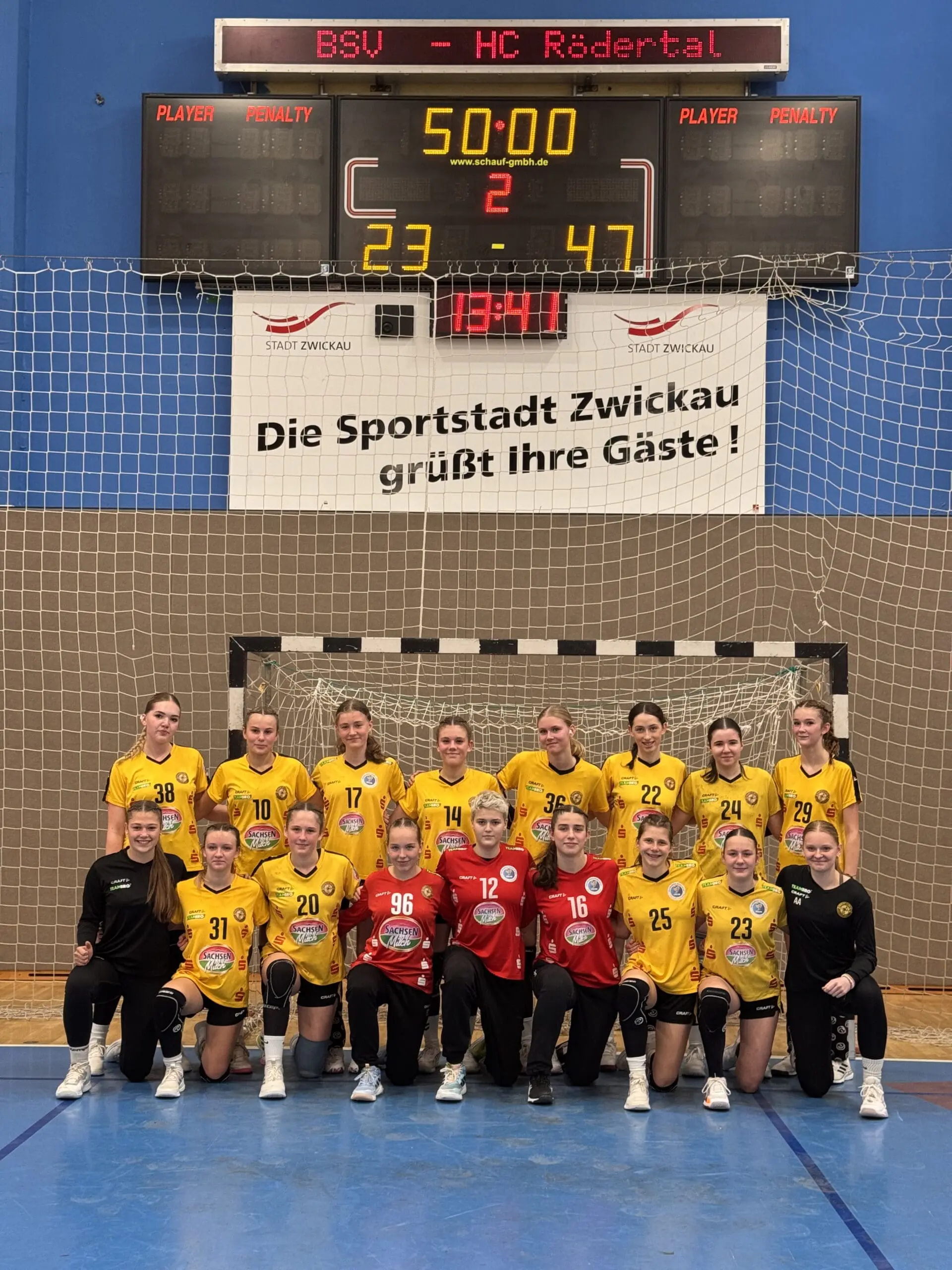 In ihrem zweiten Auswärtsspiel gegen den BSV Sachsen Zwickau am 25. erwischten unsere B‑Mädchen einen wachen Start, fanden rasch in ein geordnetes Angriffsspiel und nutzen die sich ihnen bietenden Chancen konsequent. Die Defensive arbeitete geschlossen, die Wege wurden kurz gehalten, und nach vorn blieben die Aktionen zielstrebig. Der Vorsprung wuchs entsprechend kontinuierlich, zur Halbzeit führten die Rödertalbienen mit 27:8.