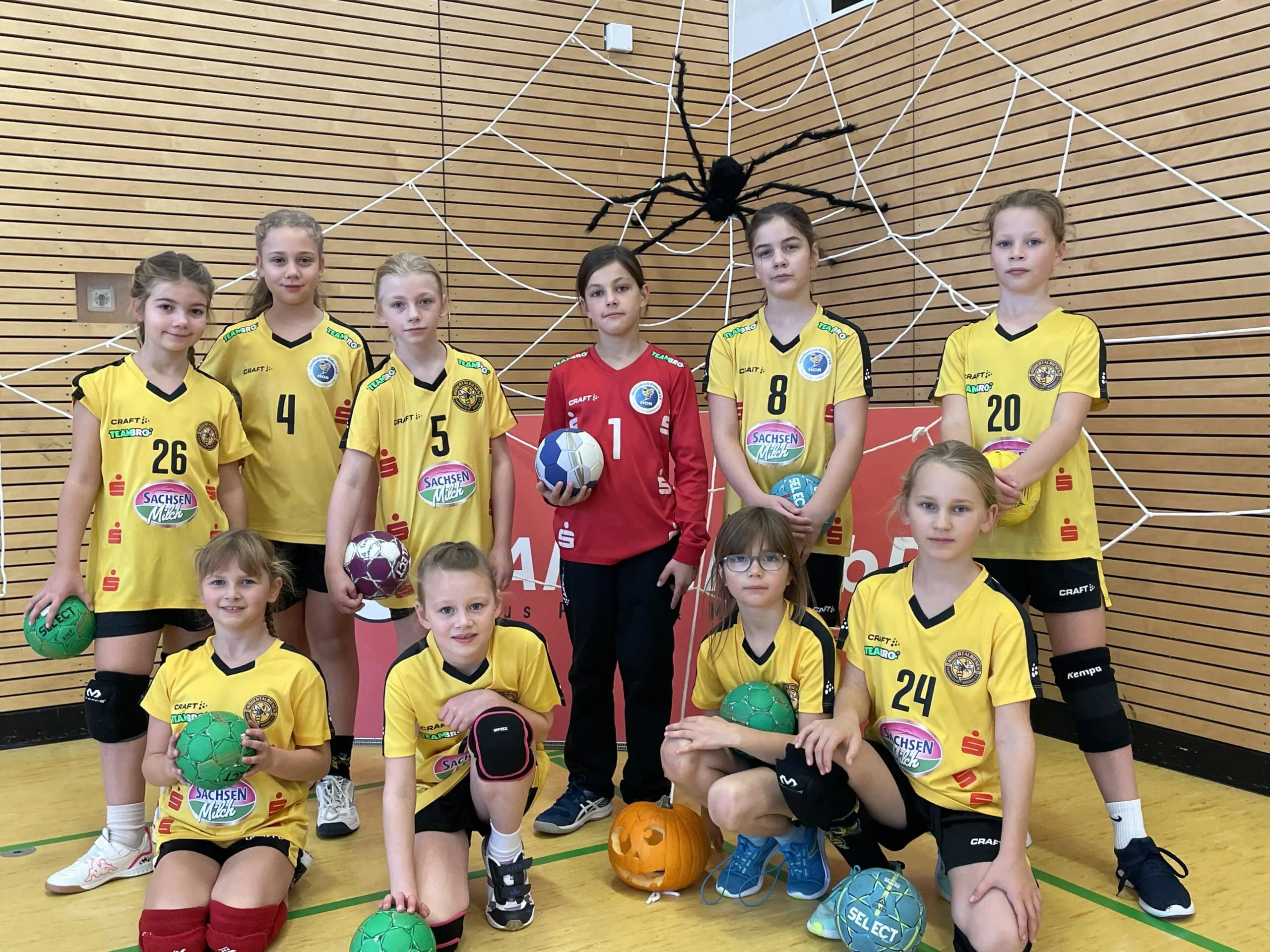 Am Freitag hieß es für die Mädchen der E 2 zeitig aufstehen. Es ging zum 1. Halloween-Cup des VfL Meißen.