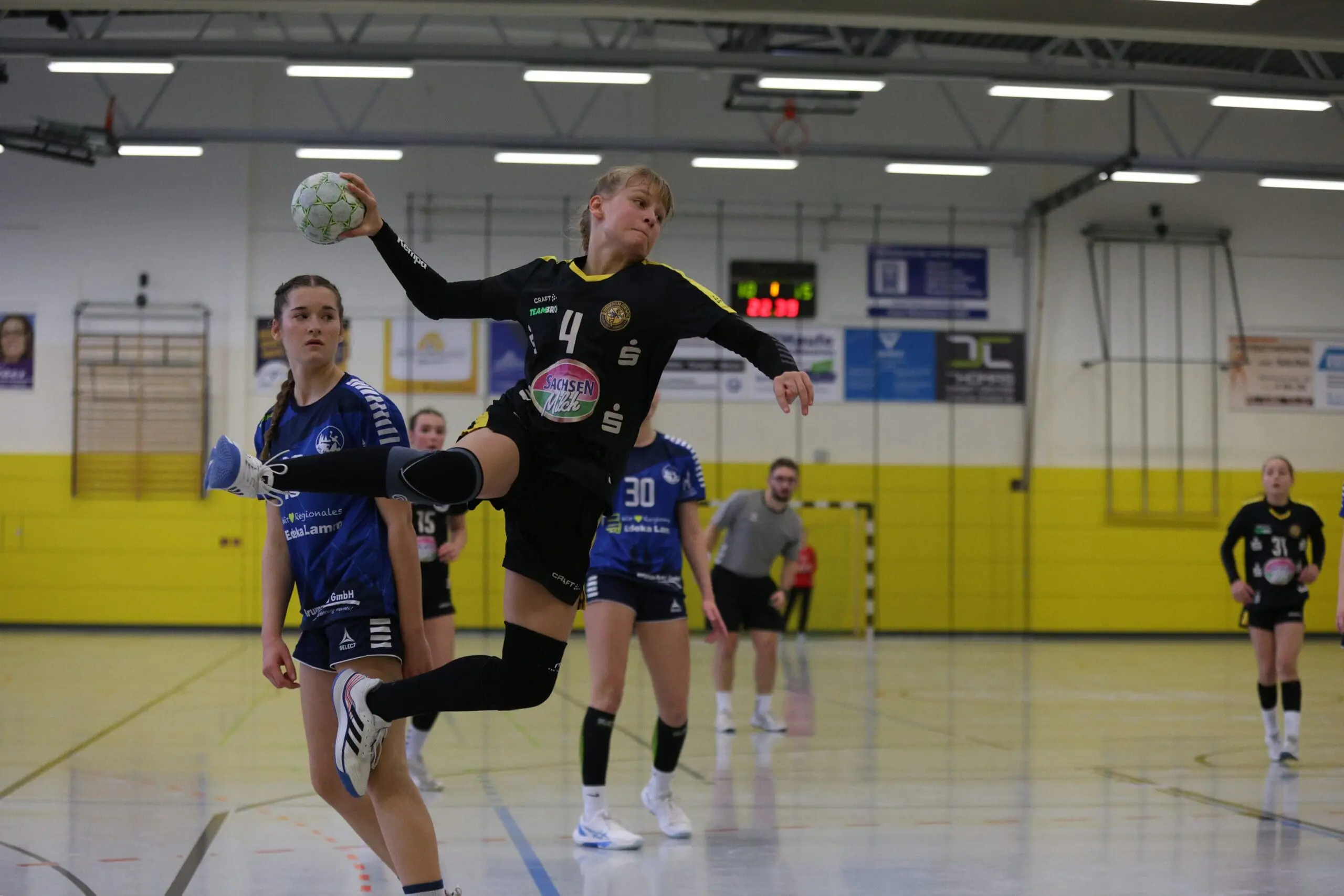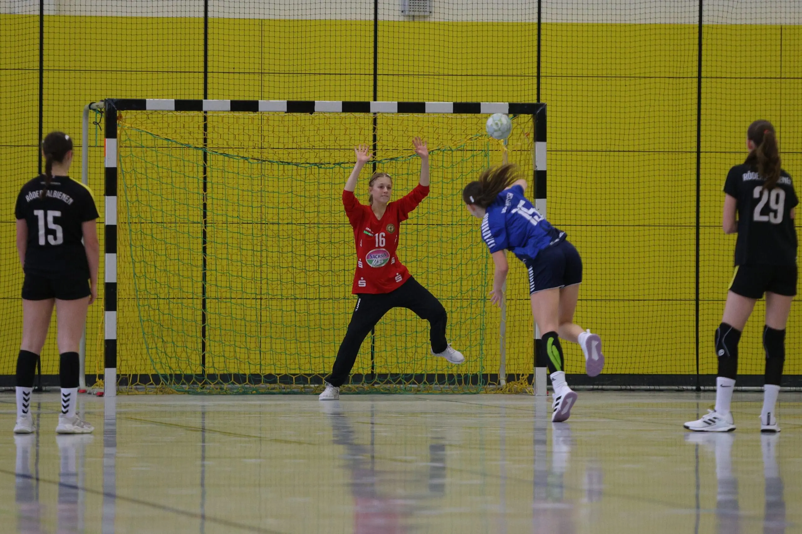 Doch Aufgeben kam für unsere Mädels nicht infrage. Mit viel Einsatz und deutlich verbessertem Zusammenspiel starteten sie in die zweite Hälfte. Vom Zwischenstand von 19:24 aus gelang eine beeindruckende Aufholjagd bis zum 25:26. In dieser Phase avancierte Torhüterin Nia mit mehreren starken Paraden zum Rückhalt ihres Teams. Auch im Angriff gab es zwei herausragende Leistungsträgerinnen: Leni mit insgesamt 9 Treffern sowie Katarina, die 6 Tore beisteuerte und vom Siebenmeterpunkt große Sicherheit bewies.