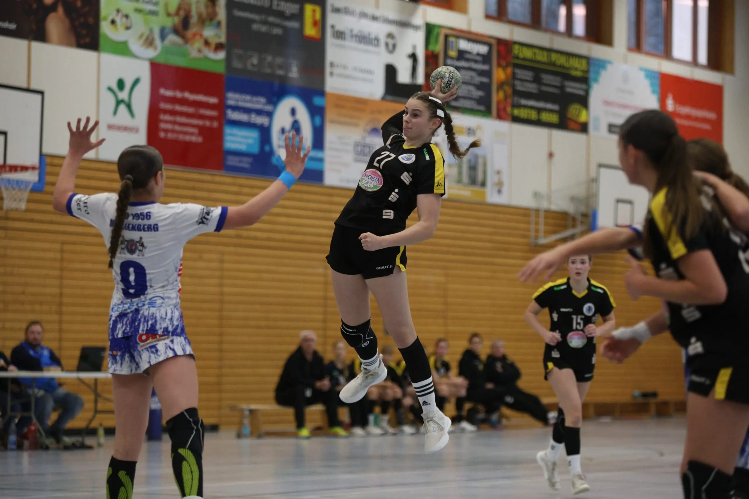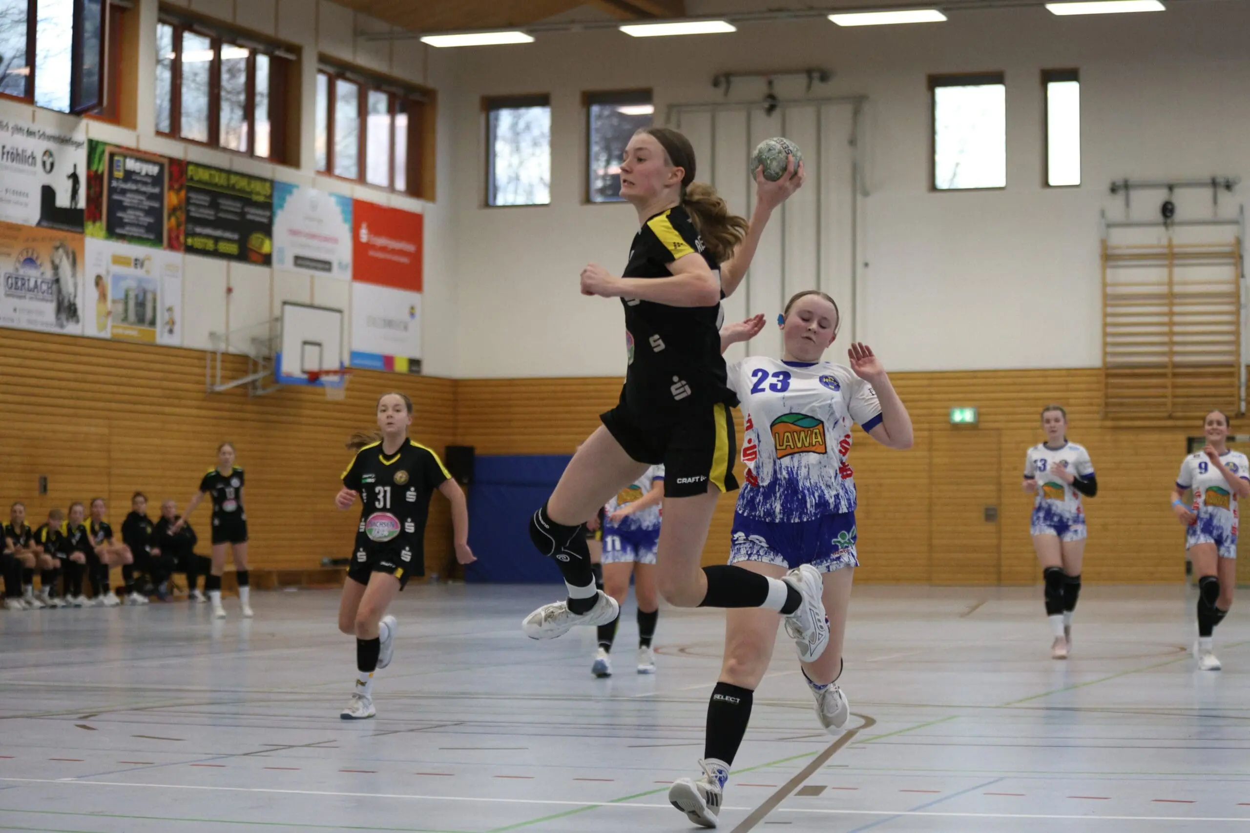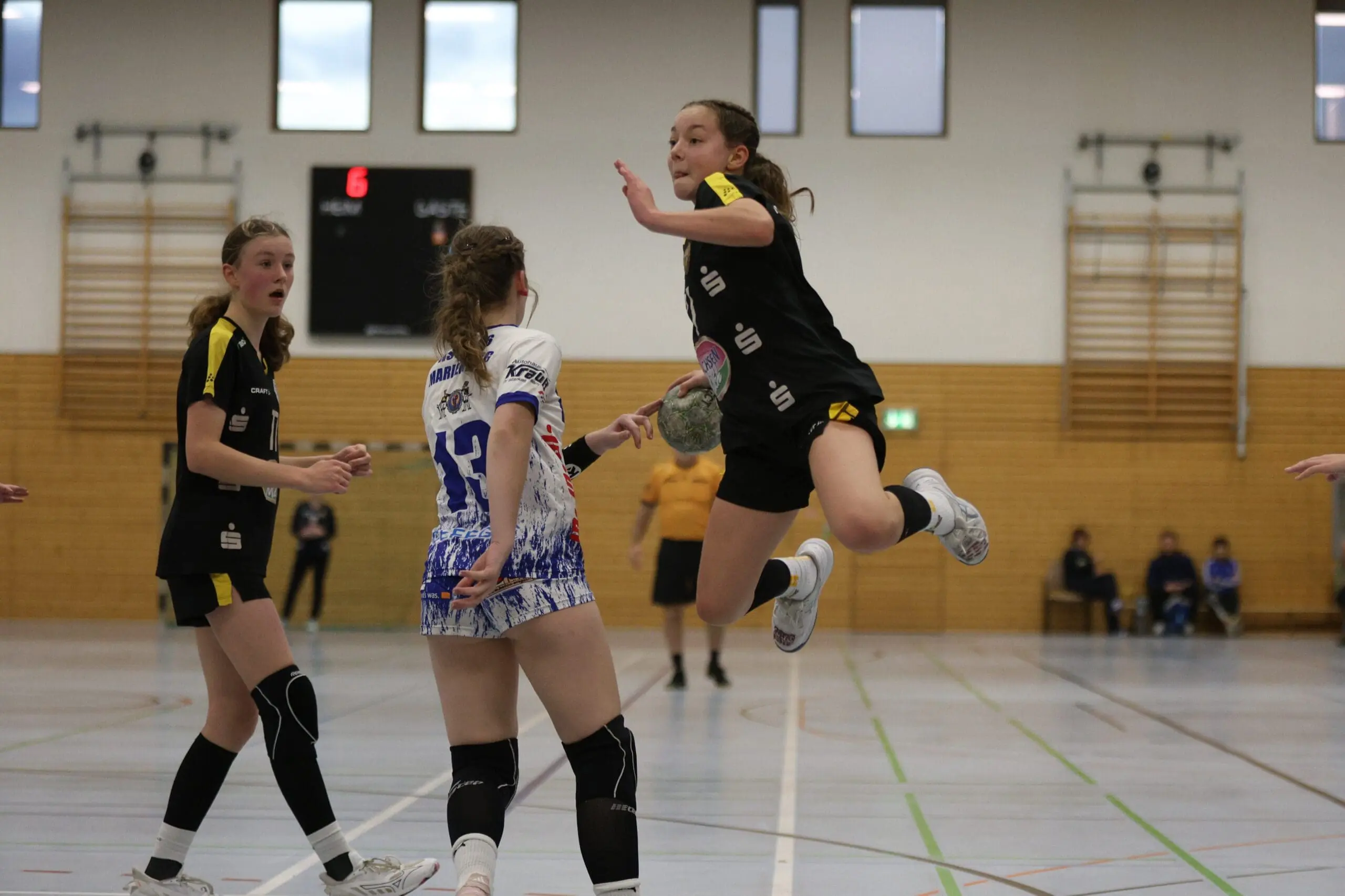Im Rückraum übernahm Ivy die Verantwortung auf der Mitteposition. Sie strukturierte das Angriffsspiel ruhig und überlegt, setzte ihre Mitspielerinnen gekonnt in Szene und schuf so die Grundlage für die ersten Treffer. Neele, Pauline, Katarina und Mia sorgten schließlich für die ersten Tore. Beim Stand von 4:10 nahm Marienberg die erste Auszeit. In der Folgephase übernahmen Ida und Joelina Verantwortung.
