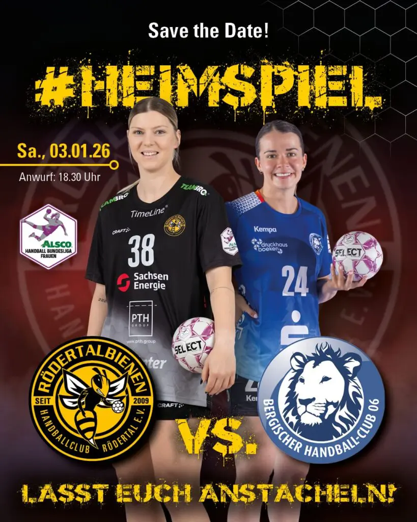 Am kommenden Samstag, dem 03. Januar 2026, laufen die Rödertalbienen zum 1. Spiel im neuen Jahr im heimischen Bienenstock auf. Anwurf für den ersten Handballkracher gegen Tabellennachbarn Bergischer HC in der Sporthalle am Gymnasium ist um 18:30 Uhr.