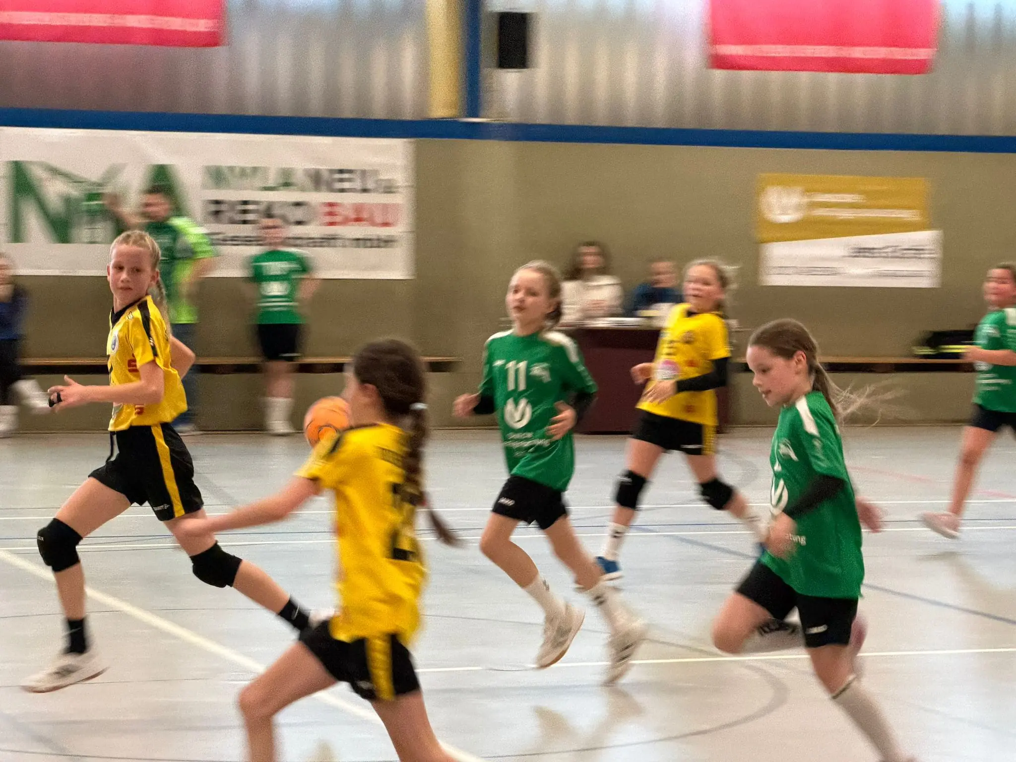 Auch in der zweiten Partie gegen den Gastgeber aus Rietschen behielt der HCR die Oberhand. Zwar gestaltete sich das Spiel phasenweise etwas schwieriger, da sich im Angriff einige Abschlussfehler einschlichen, dennoch setzten sich die Bienen am Ende verdient mit 24:13 durch. Elva überzeugte mit viel Übersicht und einem mannschaftsdienlichen Spielaufbau. In der Abwehr setzten Arwen und Elena wichtige Akzente, während Leonie per Siebenmeter traf und Lena sich ebenfalls in die Torschützenliste eintrug. In der zweiten Halbzeit zeigte zudem Flora eine starke Leistung im Tor.